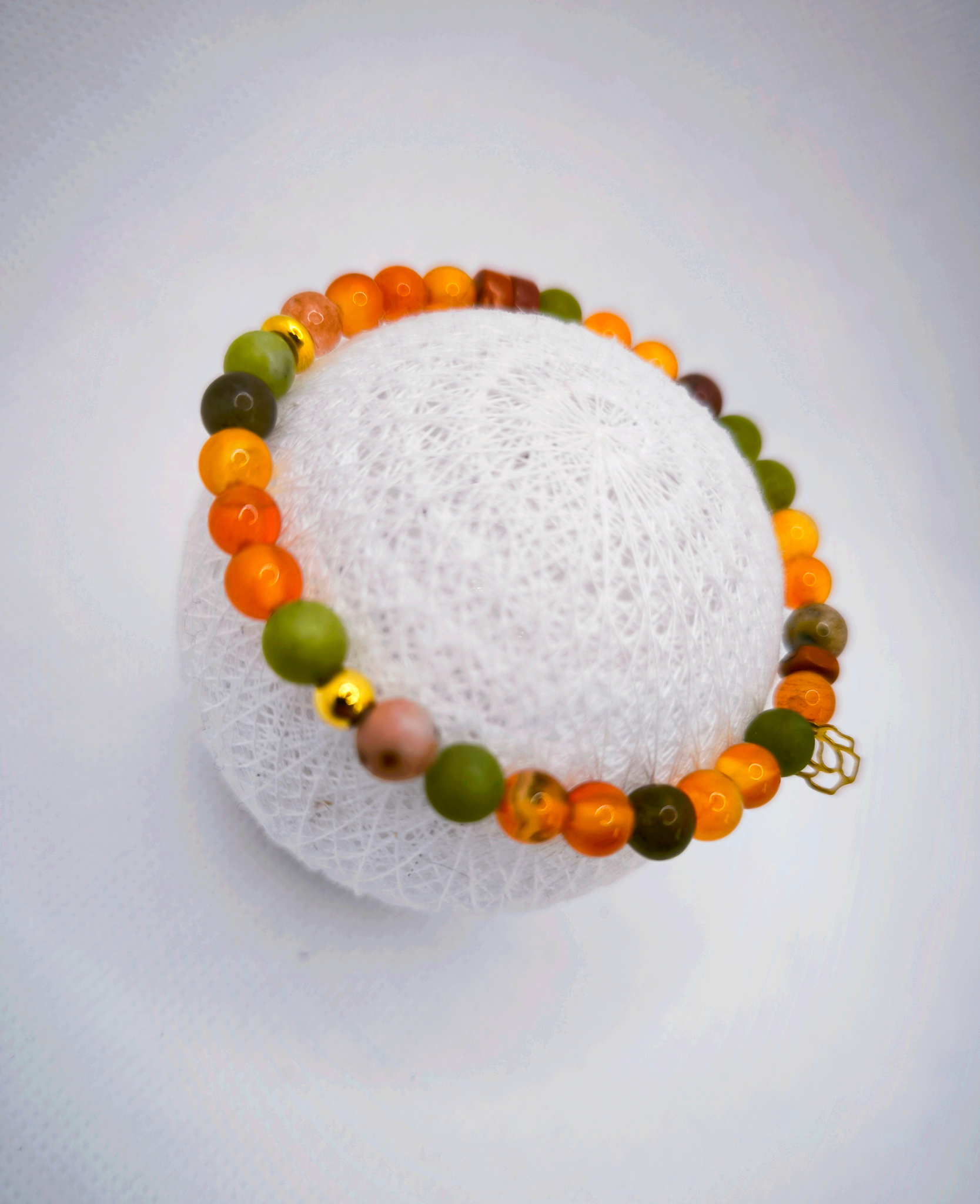 Chaque bracelet est composé de perles de 6mm aux tons chauds, et sont montées sur un cordon élastique durable de 1 mm pour un port durable.