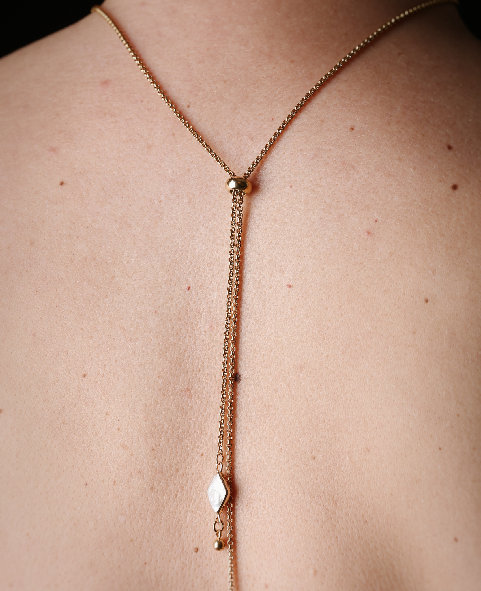 Le perle centrale coulisse et vous permet de régler la longueur de votre collier comme vous voulez