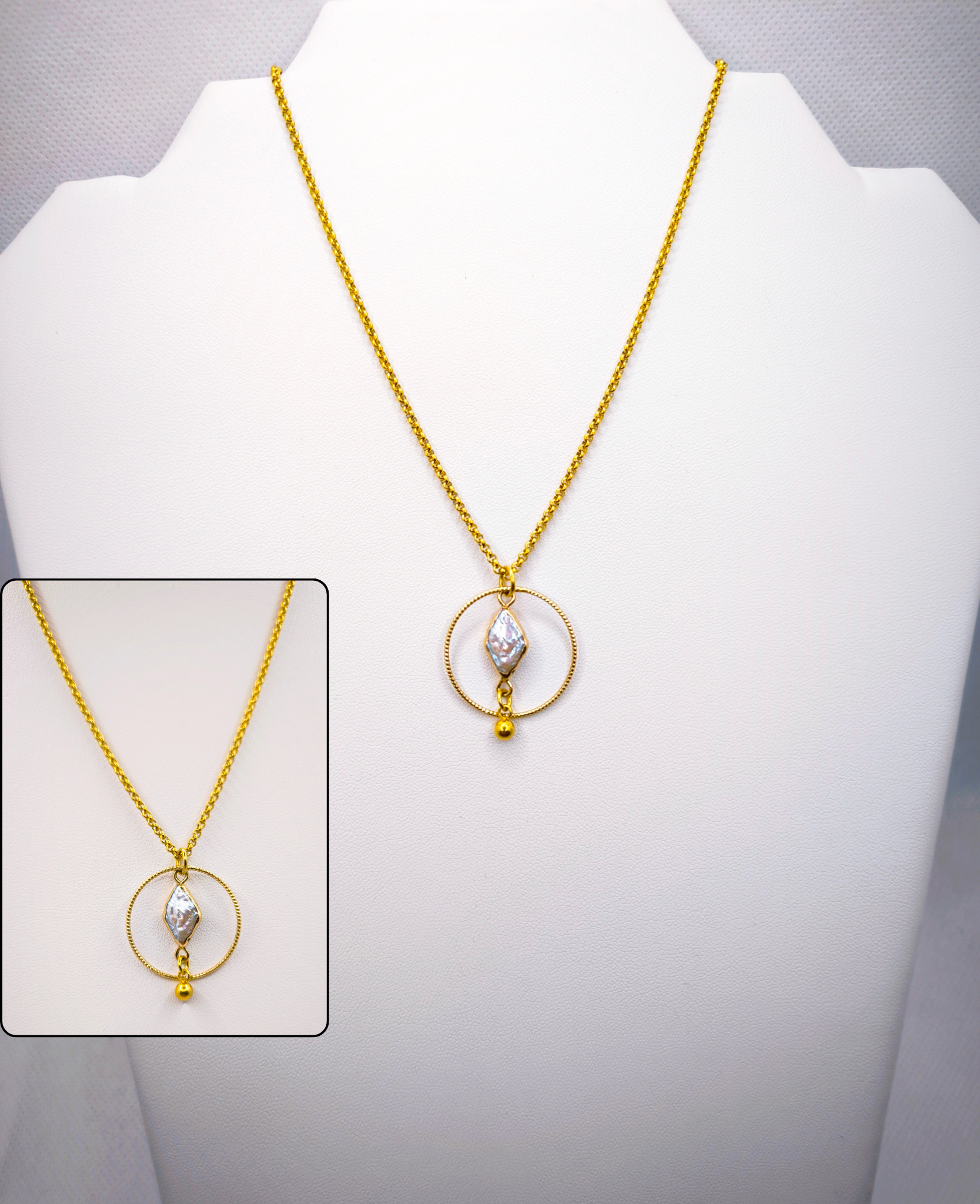 Il est composé d’éléments couleurs or, d’un motif rond arabesque, et d’une perle d’eau douce