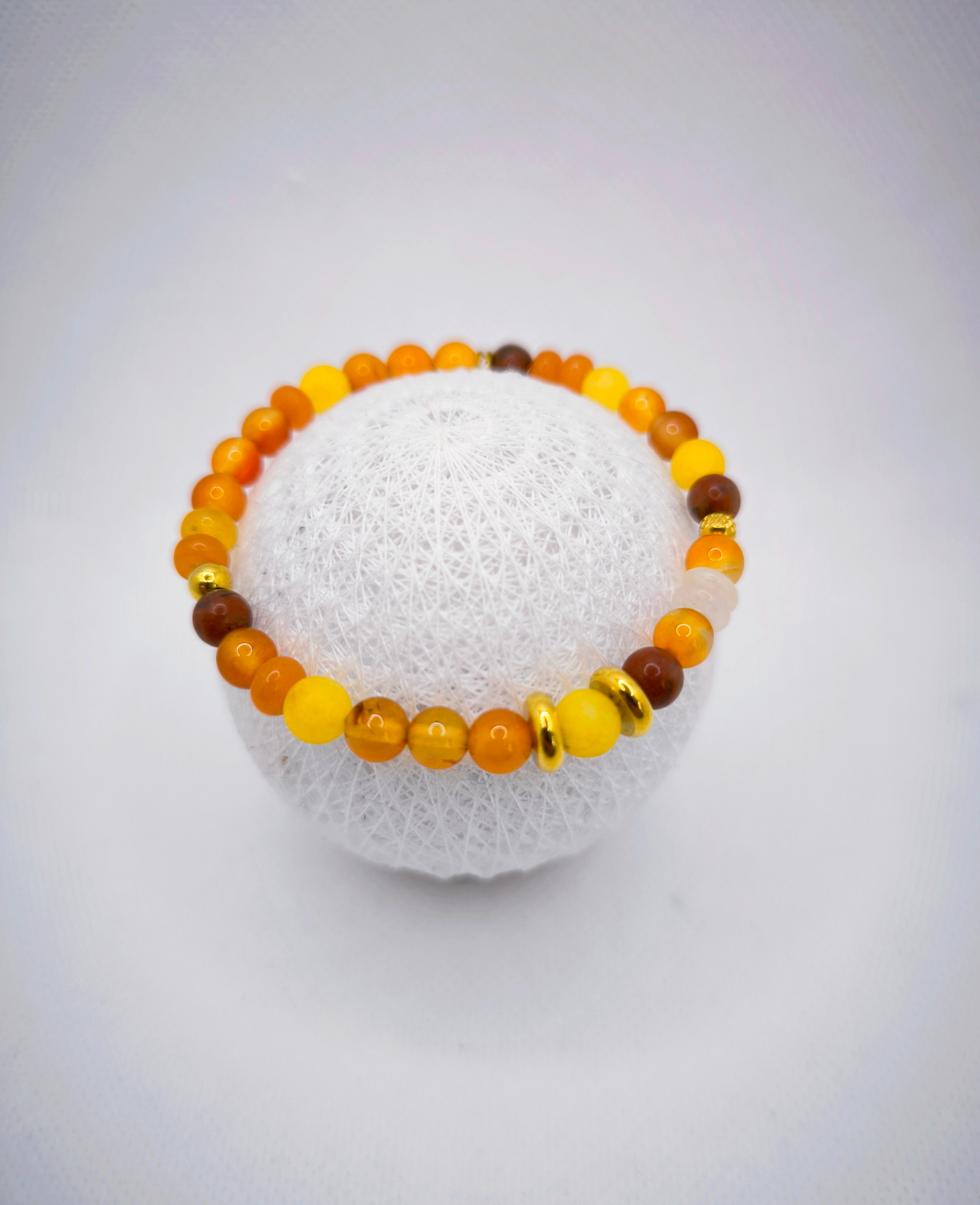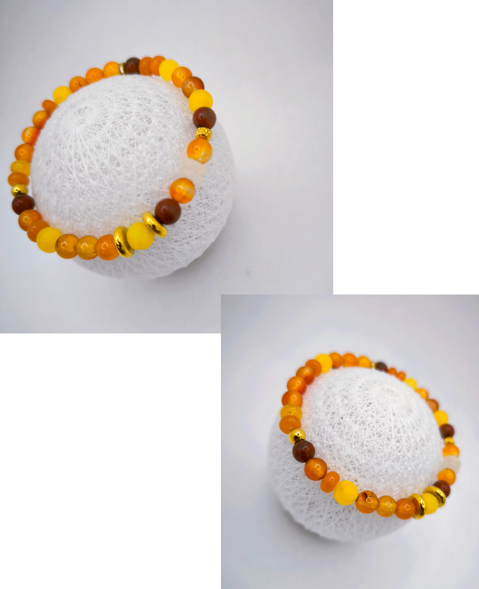 Chaque bracelet est composé de perles de 6mm aux tons chauds, et sont montées sur un cordon élastique durable de 1 mm pour un port durable.