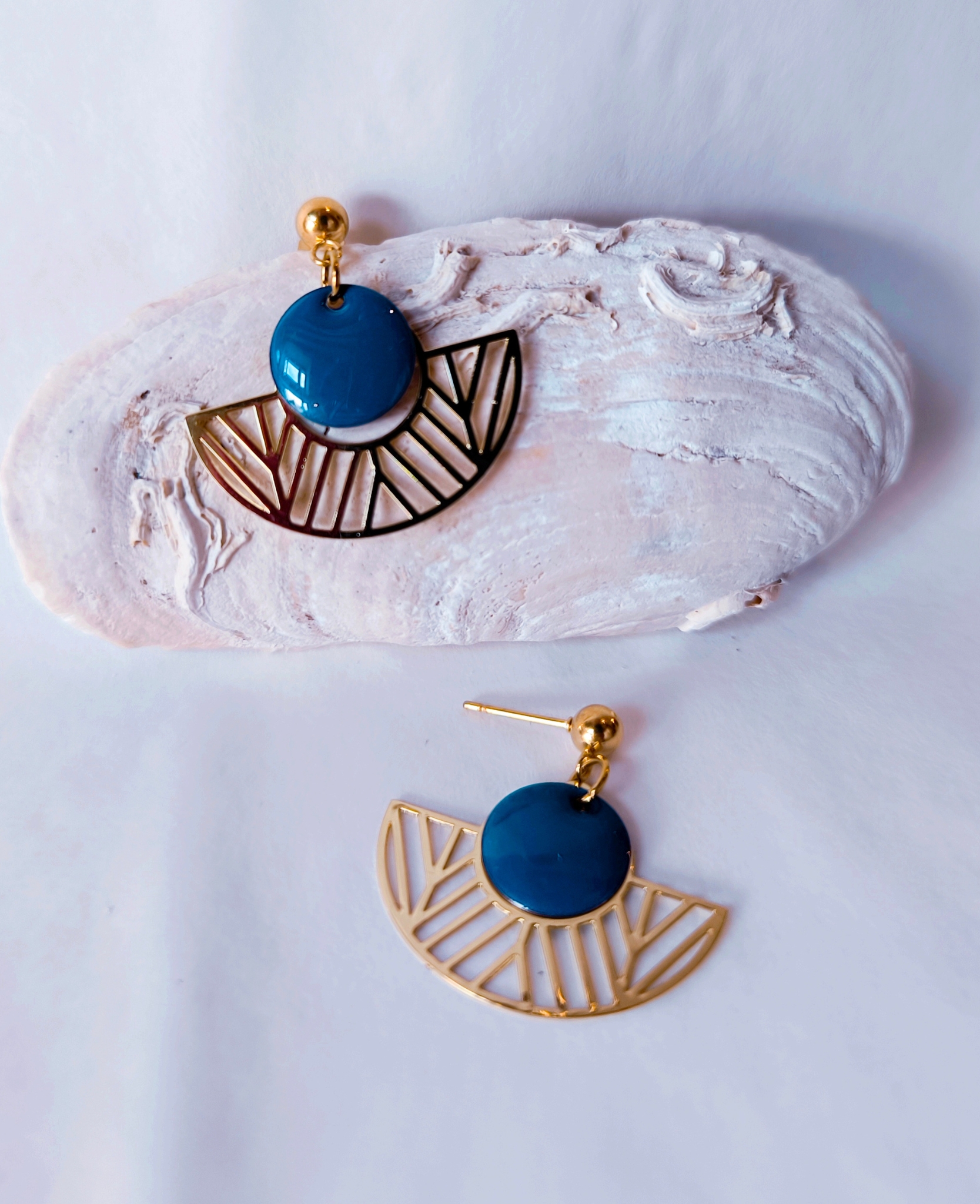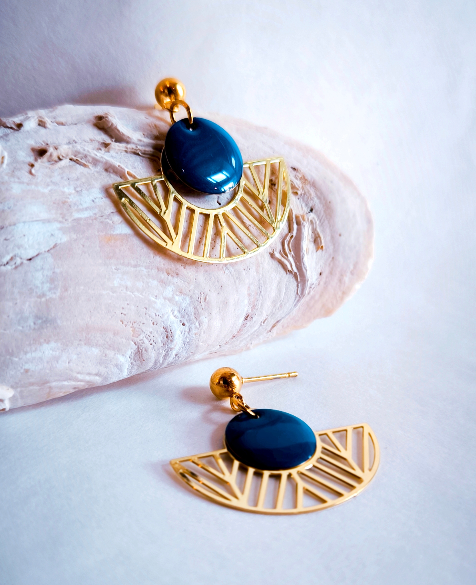 Océane…un doux prénom pour ces boucles d’oreilles aux couleurs de l’océan bleu et or …la couleur or pour les reflets du soleil qui vous illuminera chaque jour