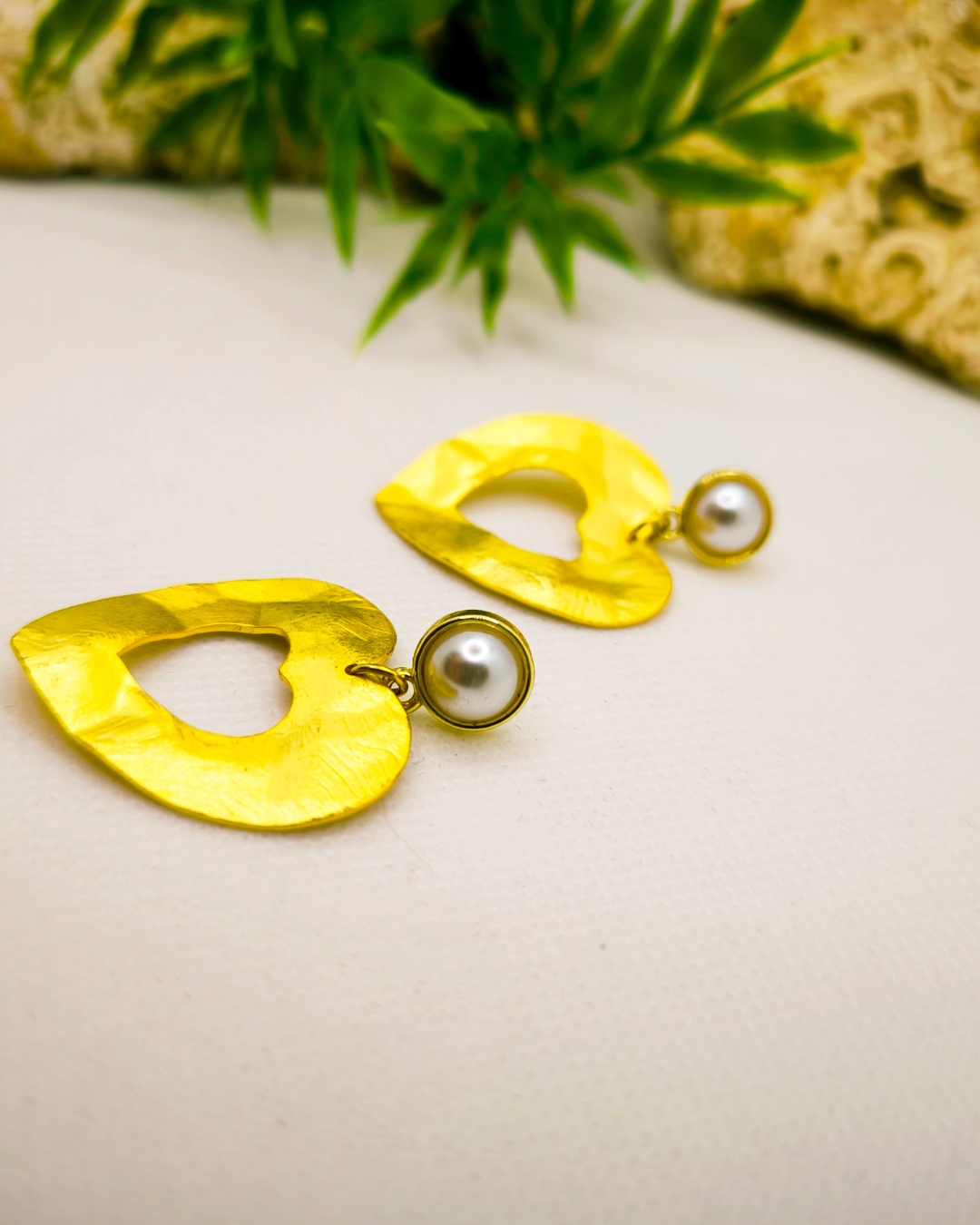 Cette exquise paire de boucles d’oreilles en forme de cœur est ornée d’une délicate couche d’or fin, respirant la sophistication et le raffinement.